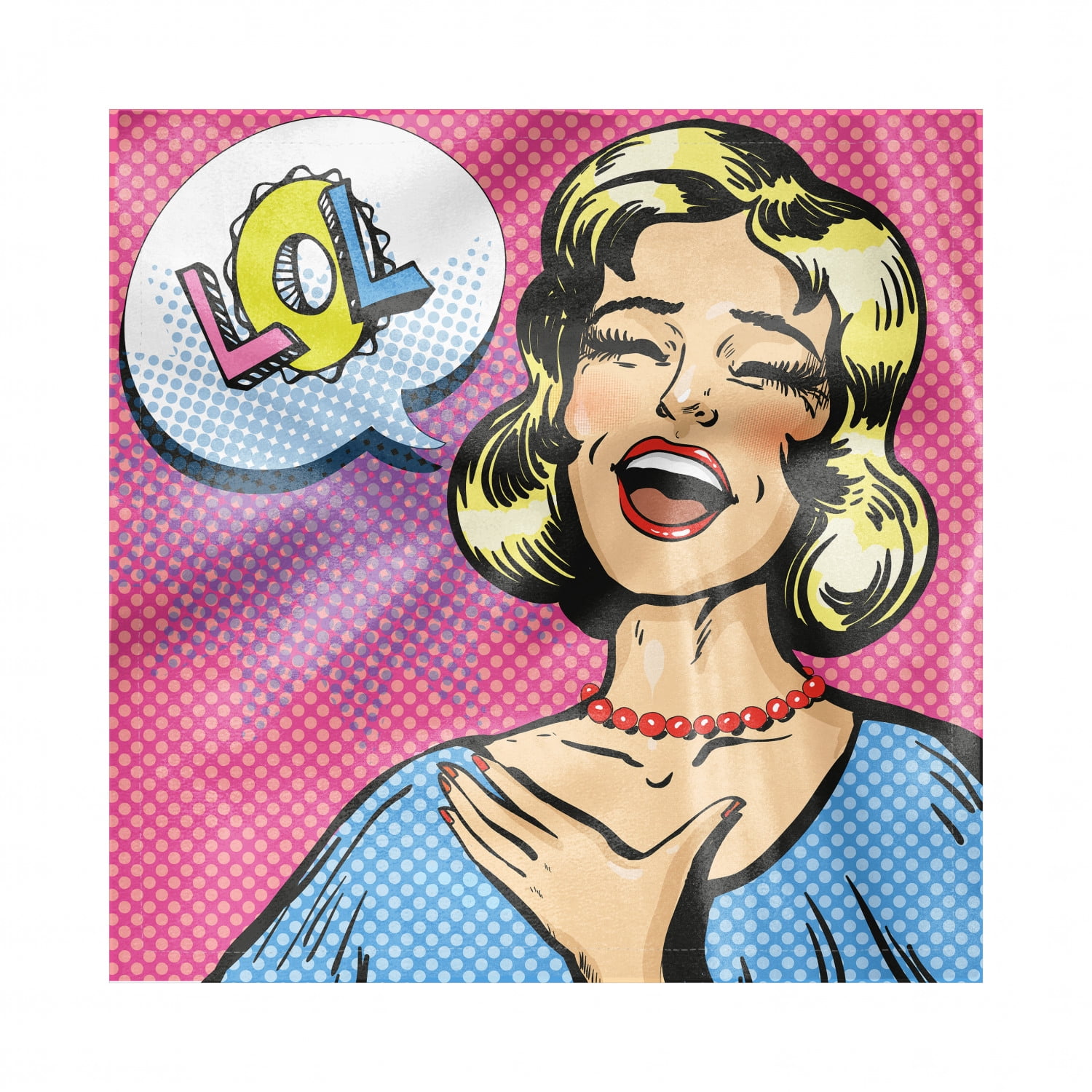 Lol Decorative Satin Napkins Set Of 4 Laughing Out Loud Woman With Closed Eyes Pop Art Young Lady And Comic Speech Bubble Square Fabric Party Dinner Napkin 12 Multicolor By Ambesonne